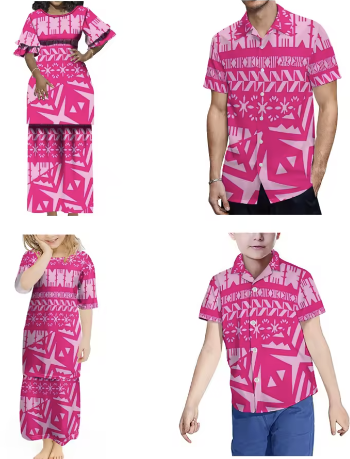 The Aroha Set features a coordinated family collection showcasing vibrant pink Polynesian prints, perfect for creating memorable moments in matching style. Each piece is crafted to provide comfortable wear while celebrating cultural patterns thoughtfully designed for all ages. Ideal for family gatherings or special occasions, this set blends tradition and contemporary fashion seamlessly.
