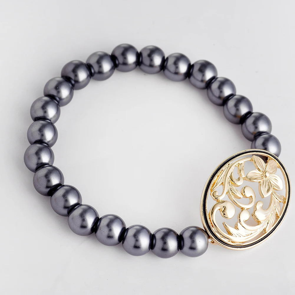 The highlight of this bracelet is the intricately designed gold charm, showcasing exquisite detailing that symbolizes strength, culture, and elegance. Its unique combination of dark pearls and bright gold makes it a statement accessory that elevates any outfit.