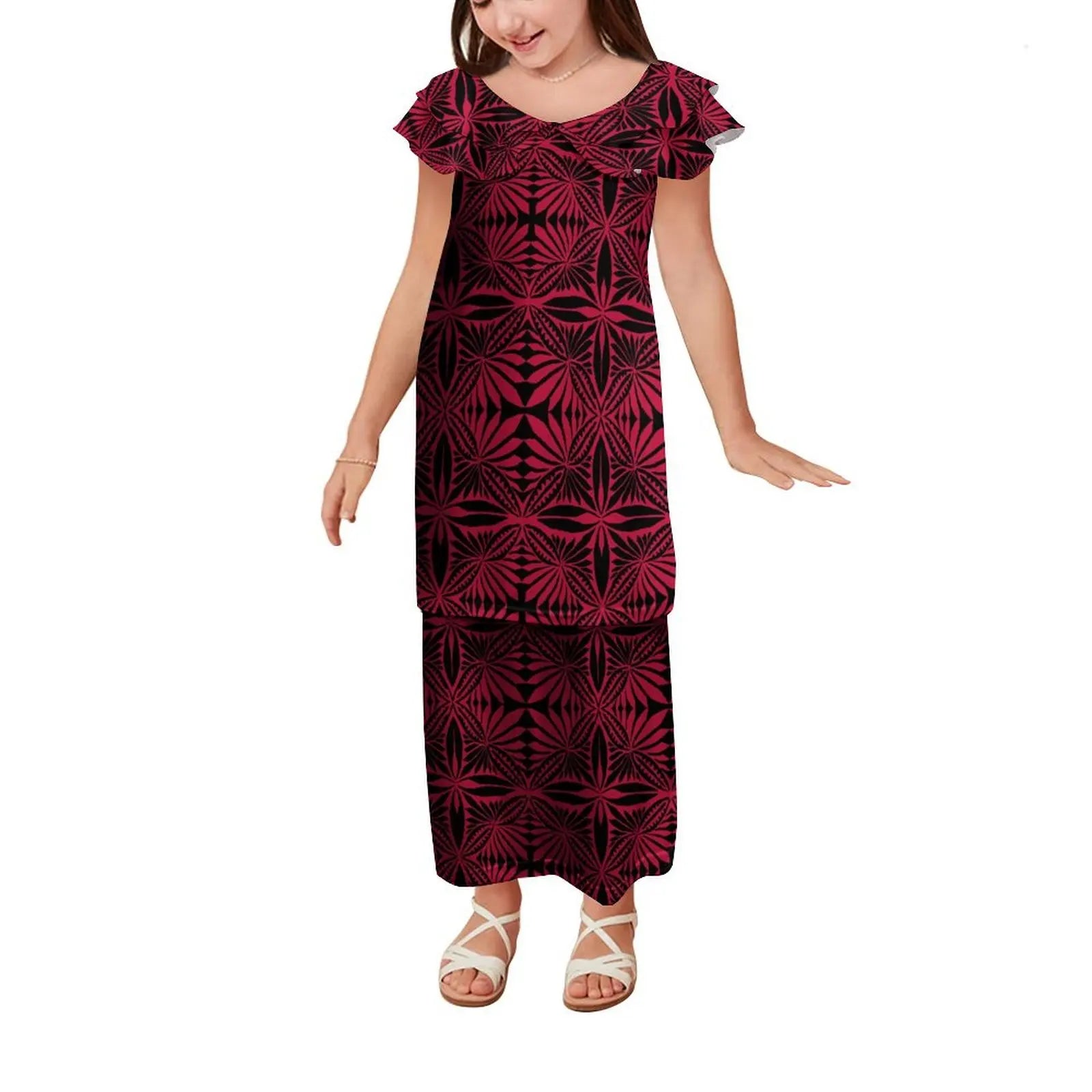This Nueve dress features a charming Polynesian print in the traditional pule tasi style, designed specifically for little girls. Crafted with attention to cultural detail, it offers both comfort and style, making it an ideal choice for everyday wear or special occasions. The breathable fabric ensures ease of movement, while the vibrant pattern celebrates Polynesian heritage with authenticity.