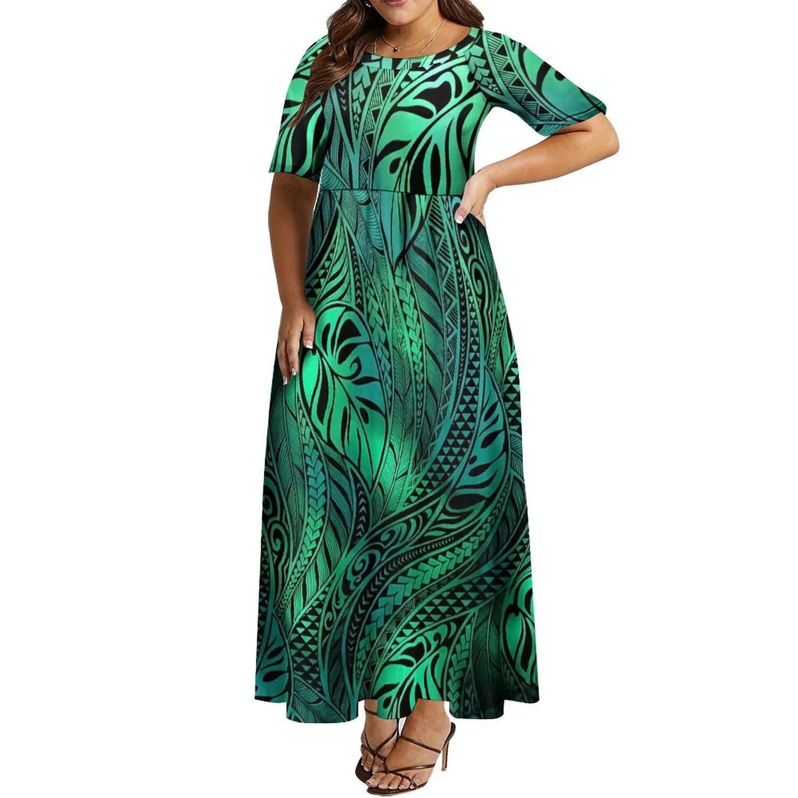 The Sarafina dress showcases a striking power shell color enhanced by vibrant Polynesian prints, blending culture with contemporary style. Designed to flatter diverse silhouettes, its versatile cut ensures a head-turning look for any occasion while reflecting authentic island-inspired elegance. This dress offers both boldness and sophistication, making it a refined choice for those seeking standout fashion with meaningful design.